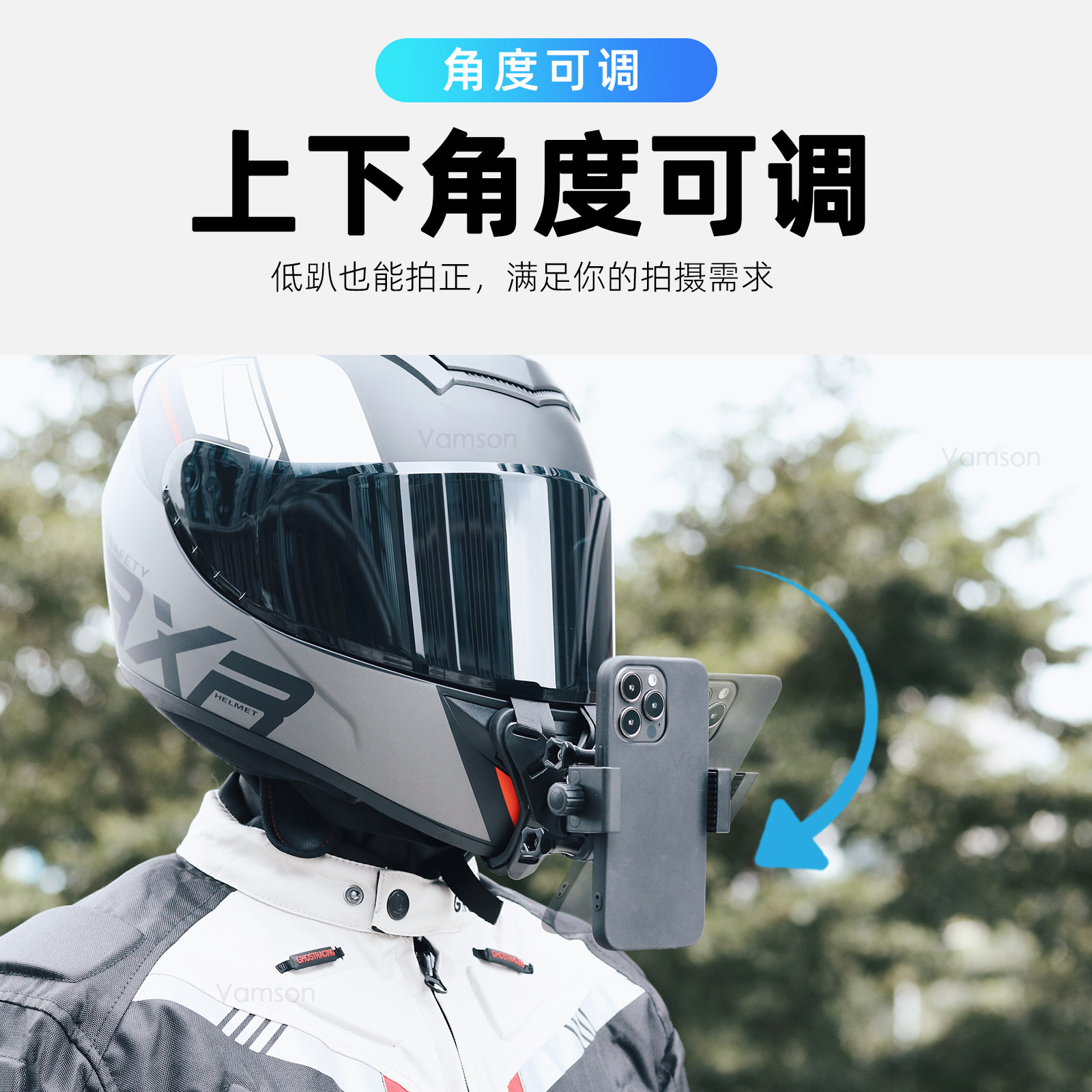 头盔下巴手机运动相机支架机车骑行第一人称视角横竖拍摄vlog视频