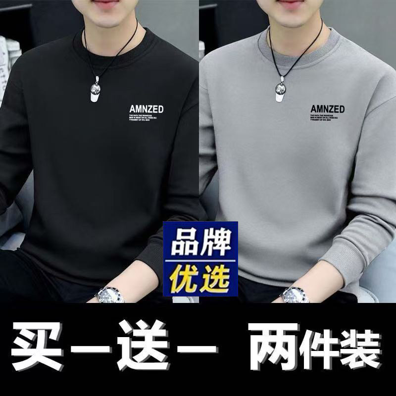 纯棉长袖t恤男士卫衣春秋季内搭宽松休闲圆领秋衣体恤打底衫上衣