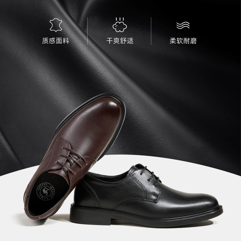 骆驼男鞋秋季皮鞋男士商务正装内增高透气英伦德比结婚新郎鞋