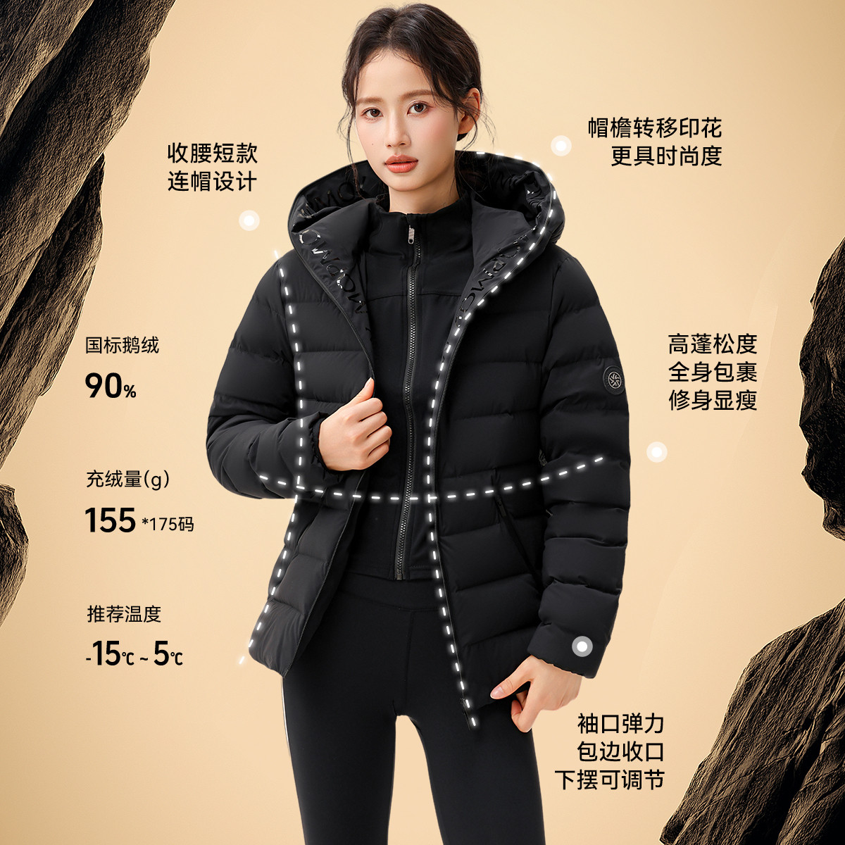 【黑曜石鹅绒服】雪中飞2025冬新款鹅绒服连帽羽绒服女加厚时尚
