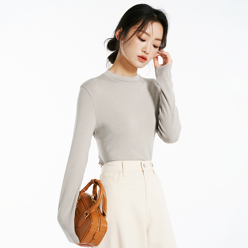 widelia十三行老板娘冬正肩小立领半高领打底衫弹力长袖T恤女9585