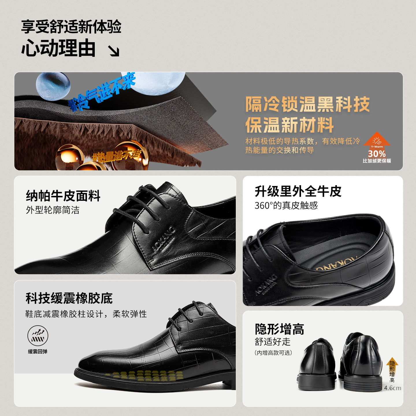 骆驼2025冬季舒适休闲加绒皮鞋男结婚新郎正装商务真皮增高德比鞋