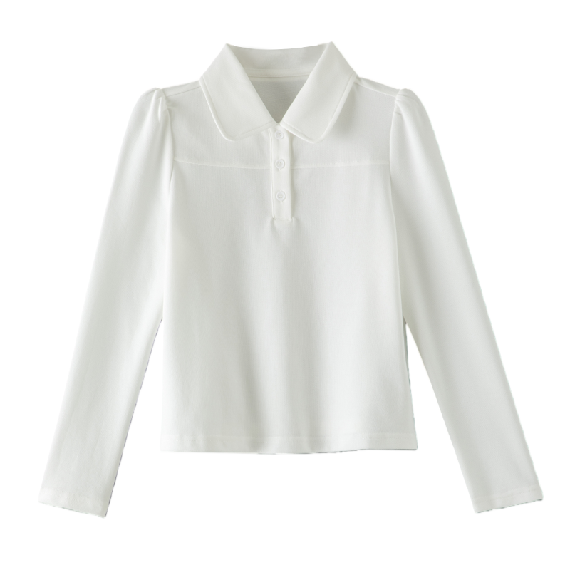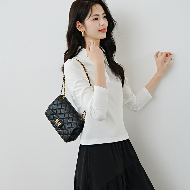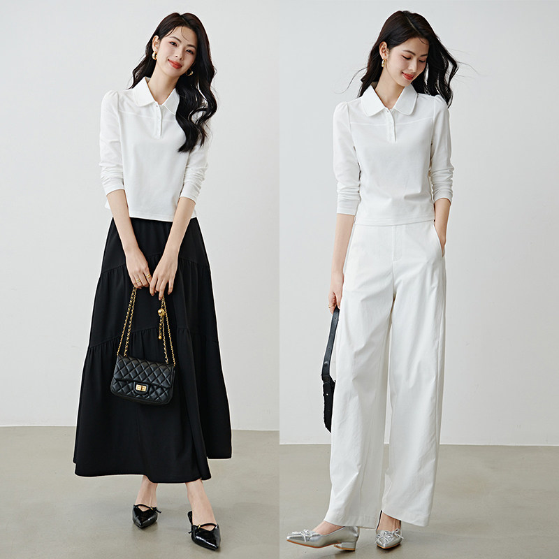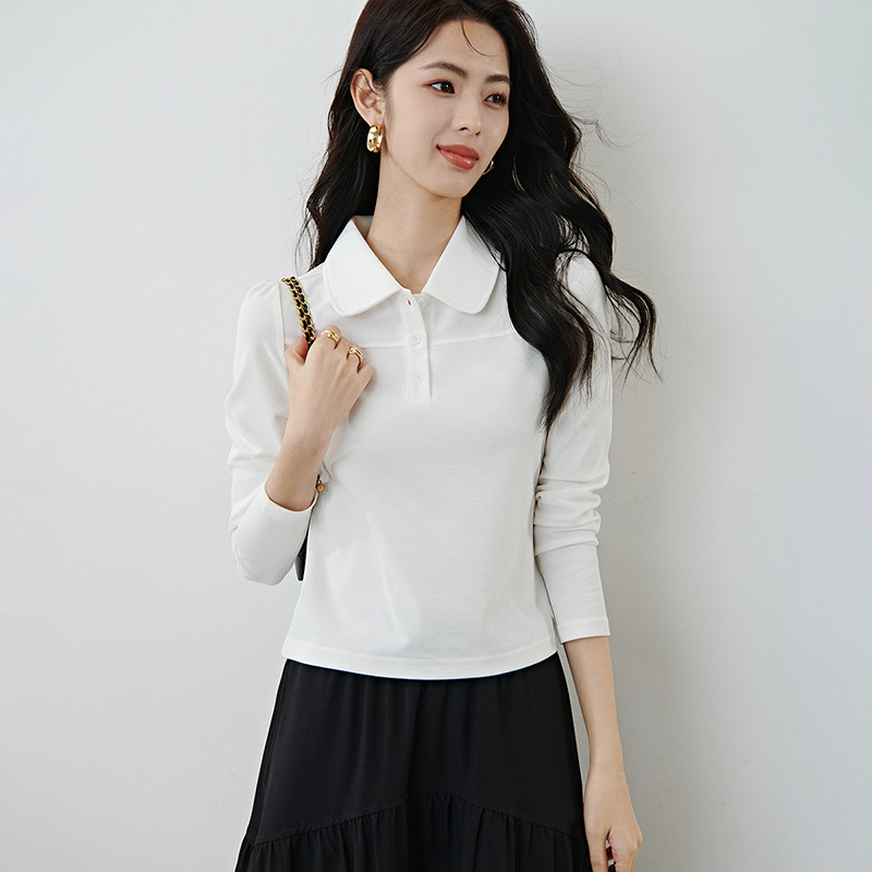 晚白2026年春新款减龄百搭休闲棉料上衣Polo翻领半开襟T恤衫女