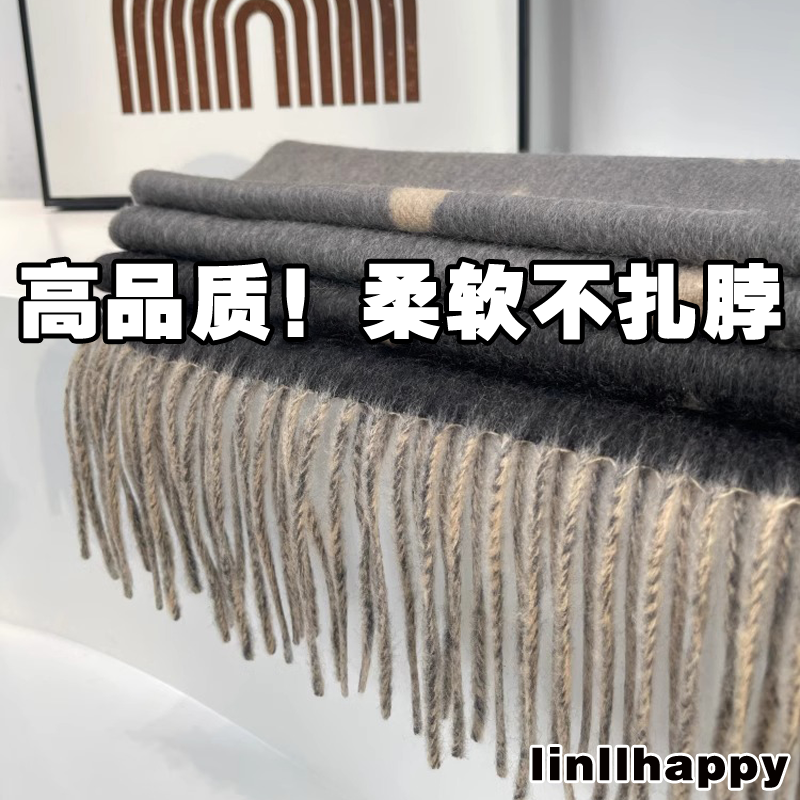 不扎脖!黑灰色羊绒围巾女双面两用渐变色披肩长款围脖秋冬季新款