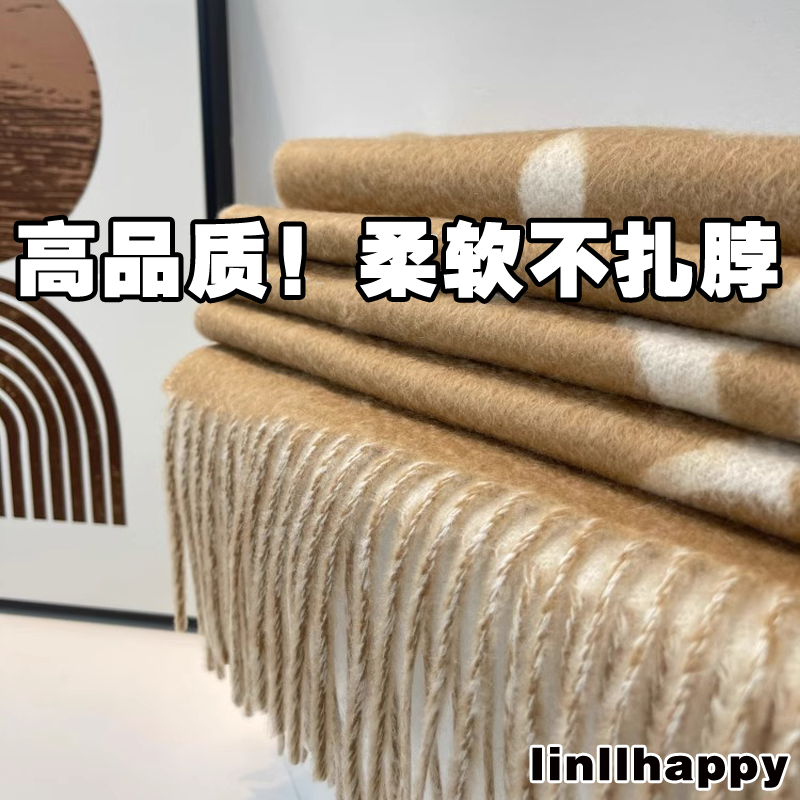 三福格子围巾韩系高级感保暖围脖披肩两用旅游外搭女冬季2025新款