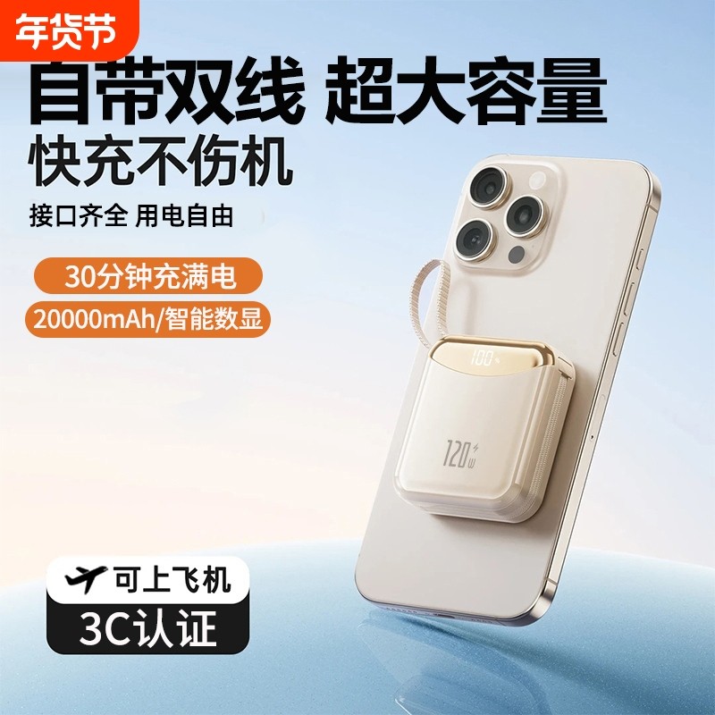 【新国标3C认证】2025新款超级快充充电宝自带线20000毫安迷你小巧大容量移动电源适用华为苹果专用可上飞机