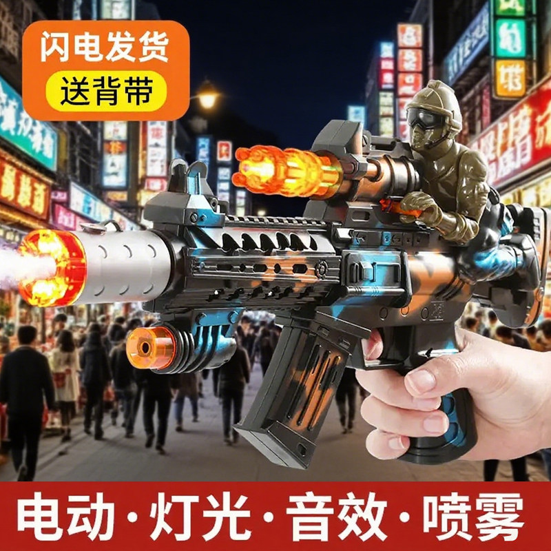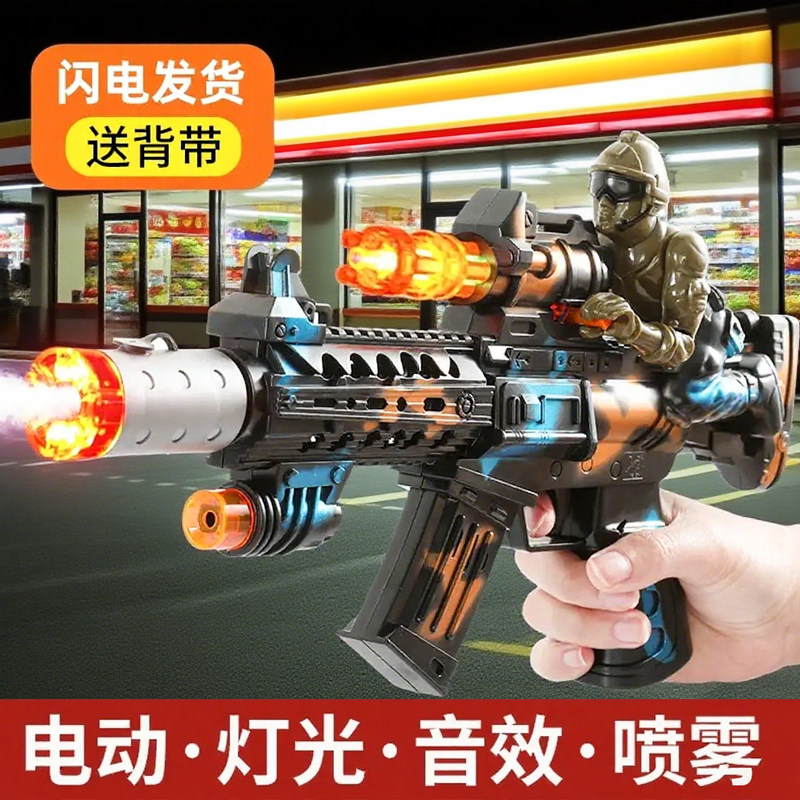 电动玩具枪儿童声光枪八音枪冲锋枪男孩3-6生日礼物发光喷雾音乐