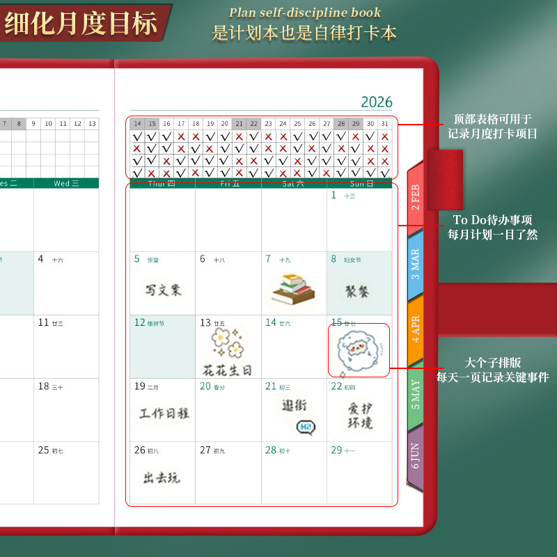 2026年新国潮日程本加厚创意记事本学习打卡笔记本故宫文创时间管理计划本效率手册高效打卡计划本办公日记本