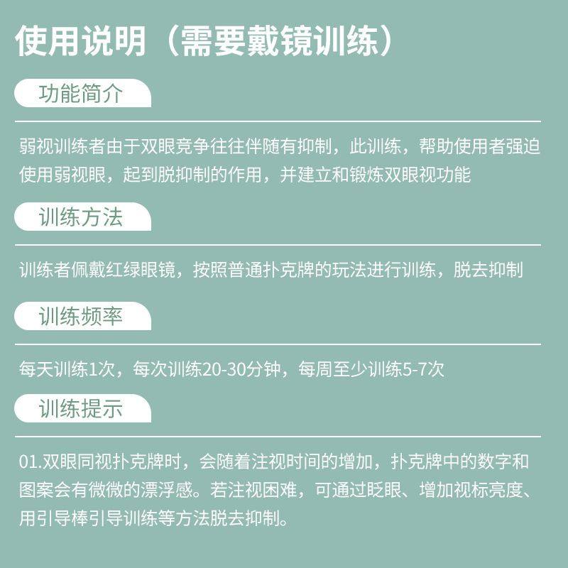 红绿扑克牌脱抑制训练卡儿童弱视斜视眼镜同时视融合视玩具卡片