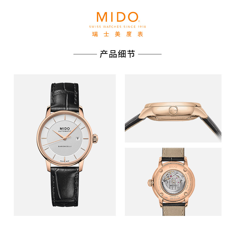 Mido美度手表女士贝伦赛丽印记款休闲钢带表全自动机械女表情侣款