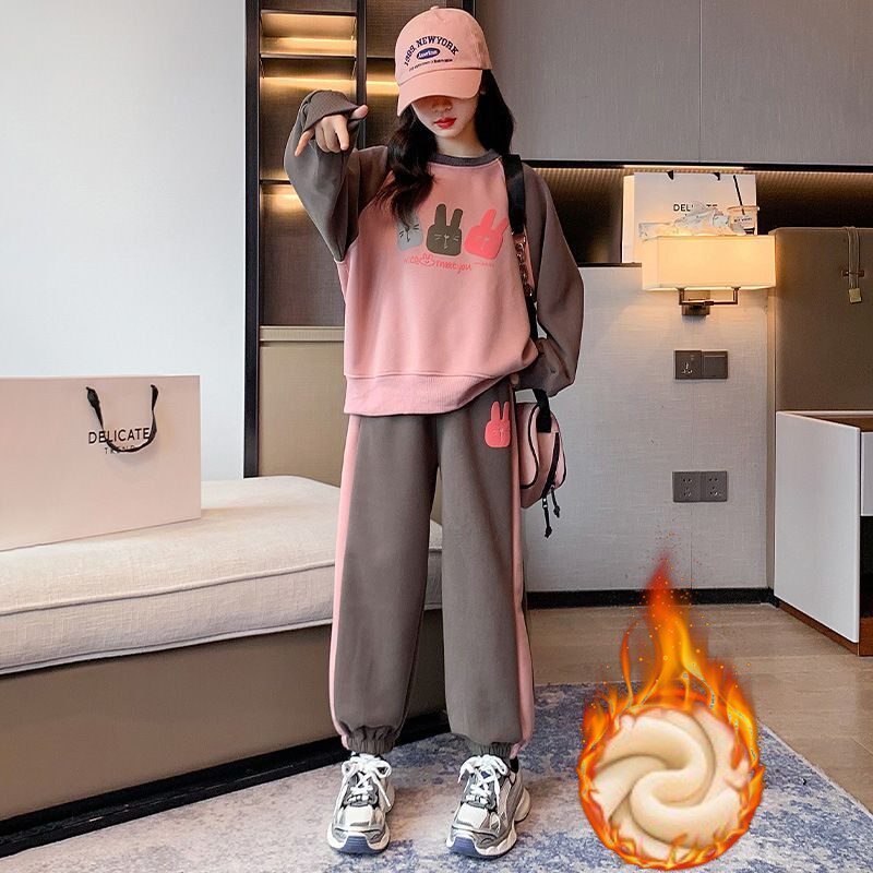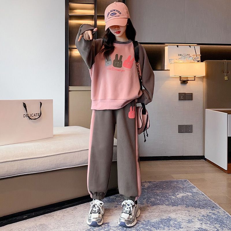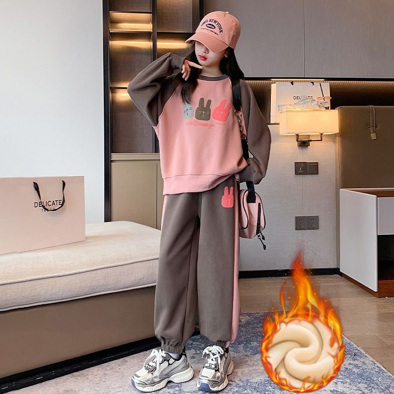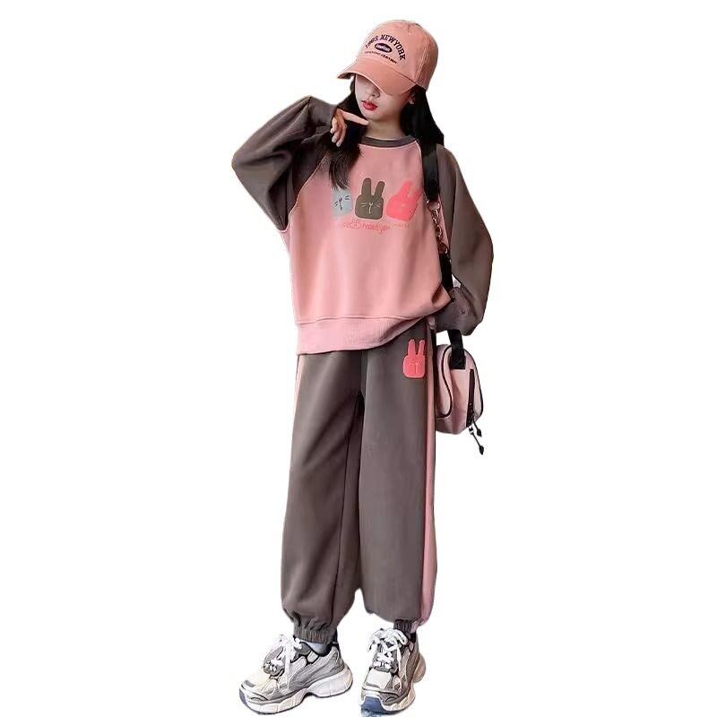 女大童春秋休闲套装2026新款洋气时髦卫衣小女孩运动件套时尚加绒