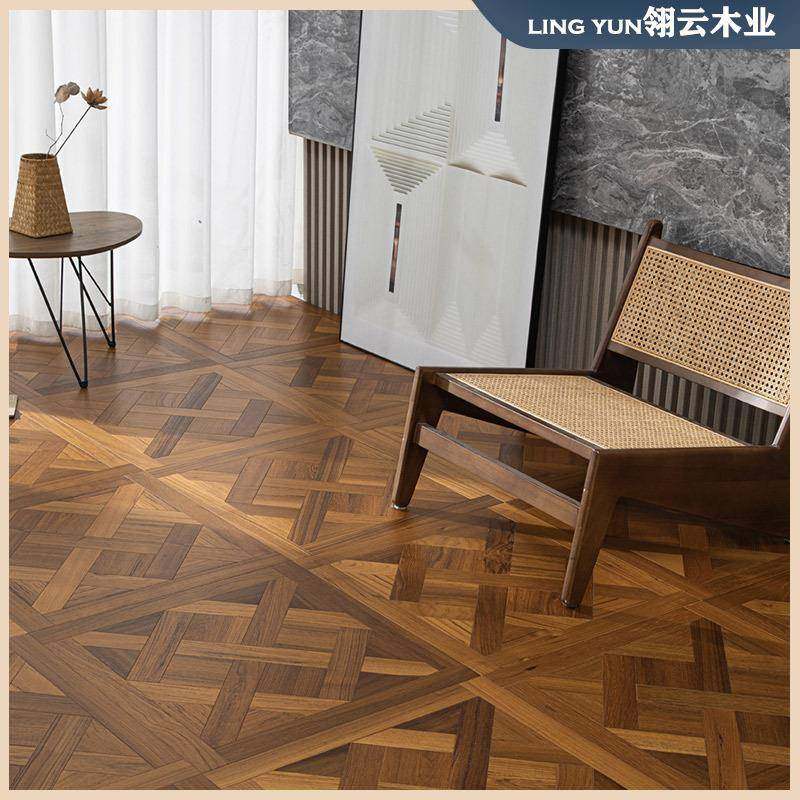 地暖正方形法式柚木凡尔赛全桦多层实木拼花地板600x600mm中古风