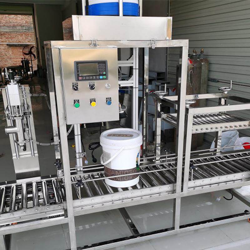 单头塑料中桶灌装滚盖线过滤称重压盖灌装机全自动液体称重灌装机