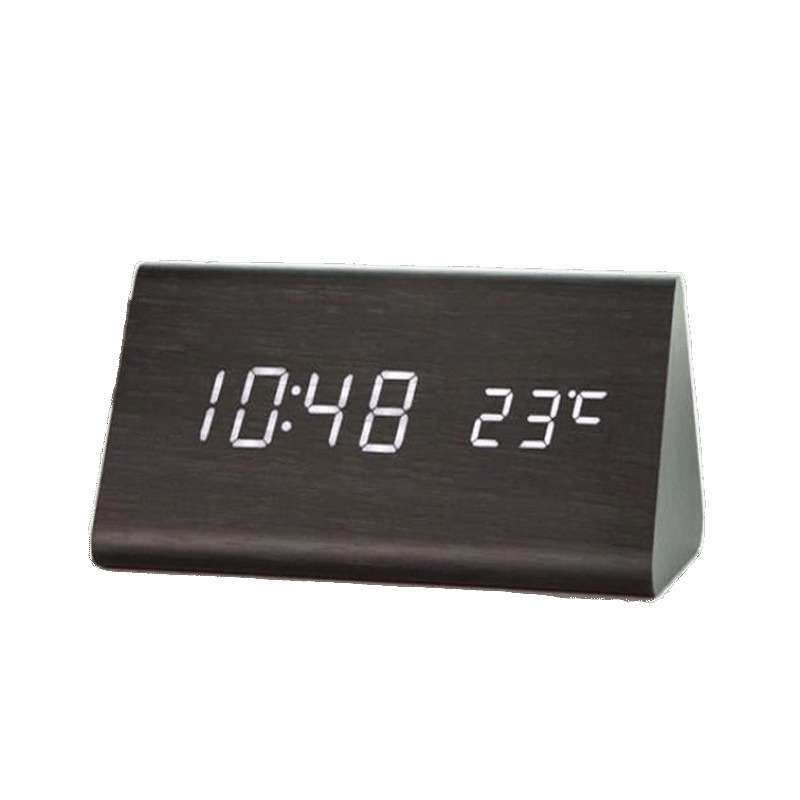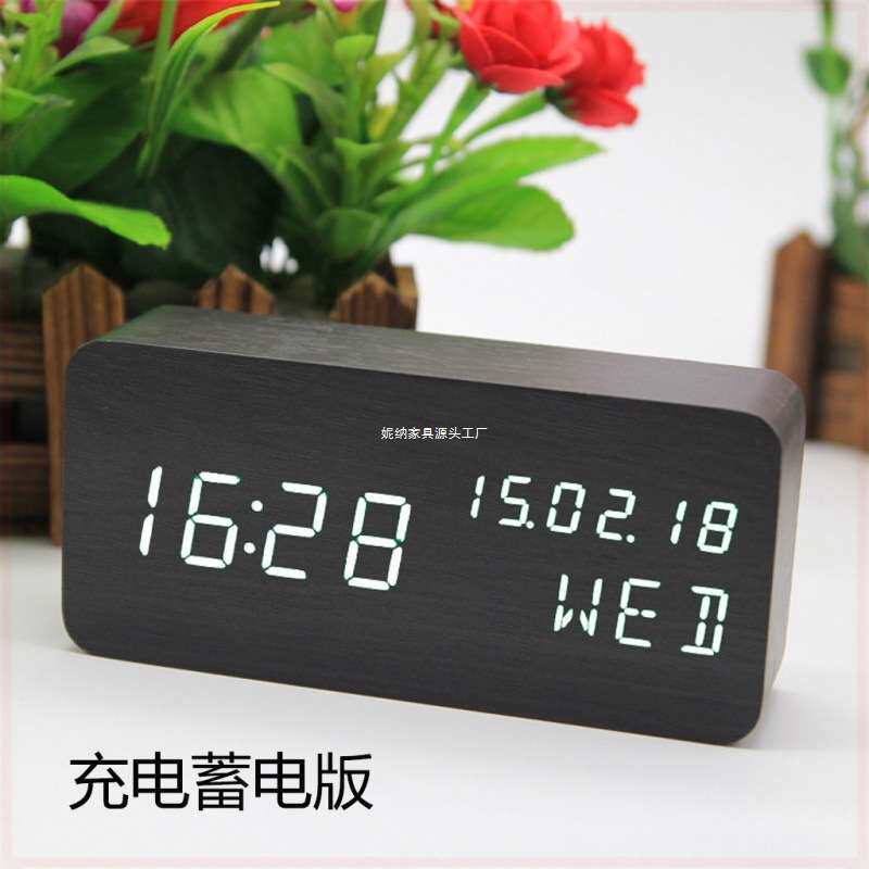 北欧创意木质木纹闹钟静音简约复古夜光时钟学生卧室床头电子台钟