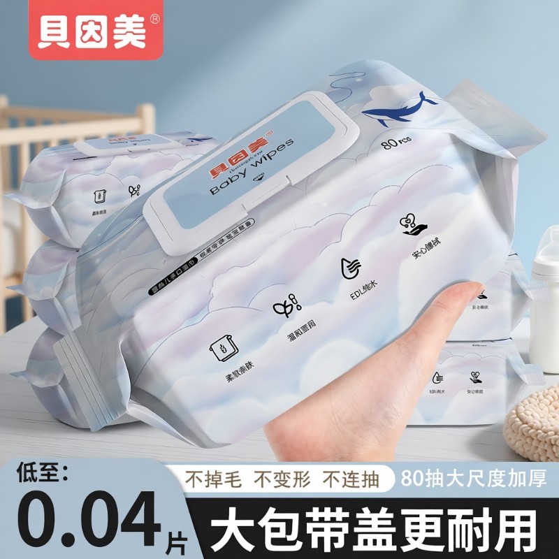 贝因美婴儿湿巾纸新生手口屁专用宝宝湿纸巾纯水家庭用大包实惠装