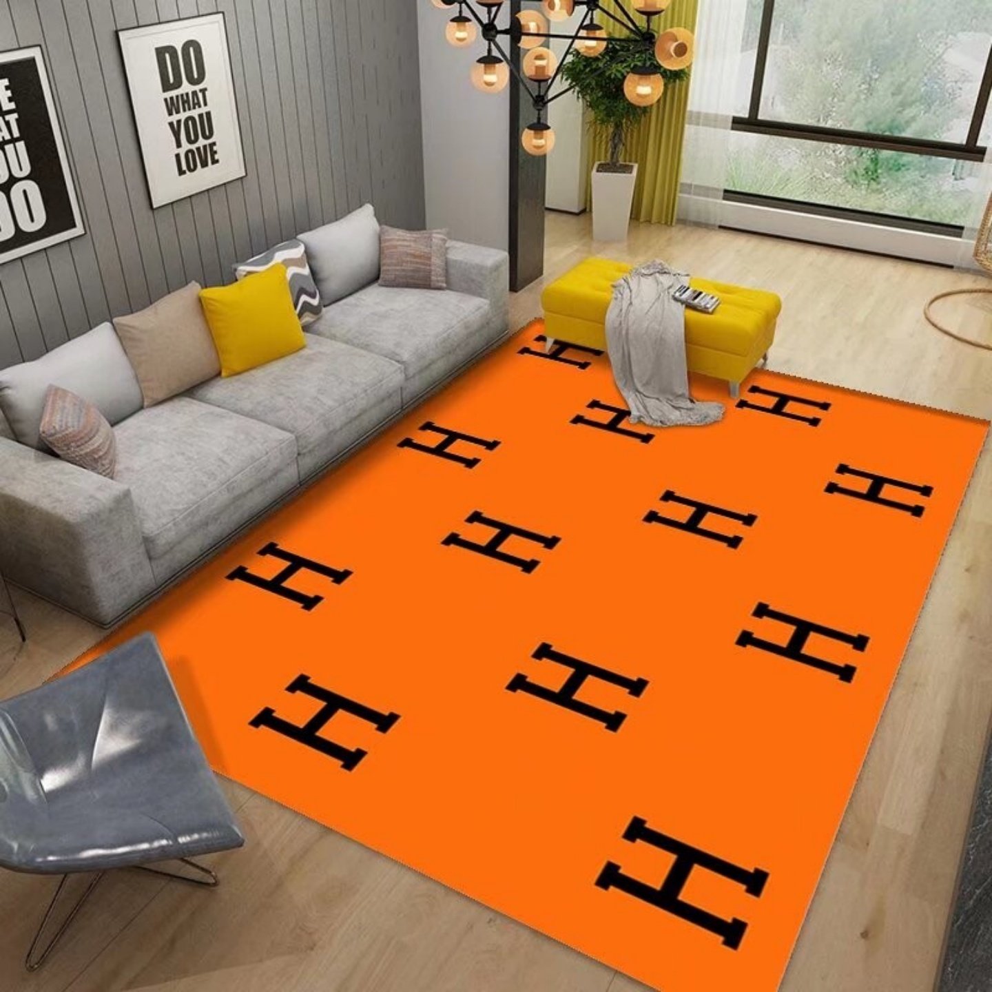 2025新款卧室潮牌橙色H满铺地垫网红高级家用客厅地毯茶几床边毯