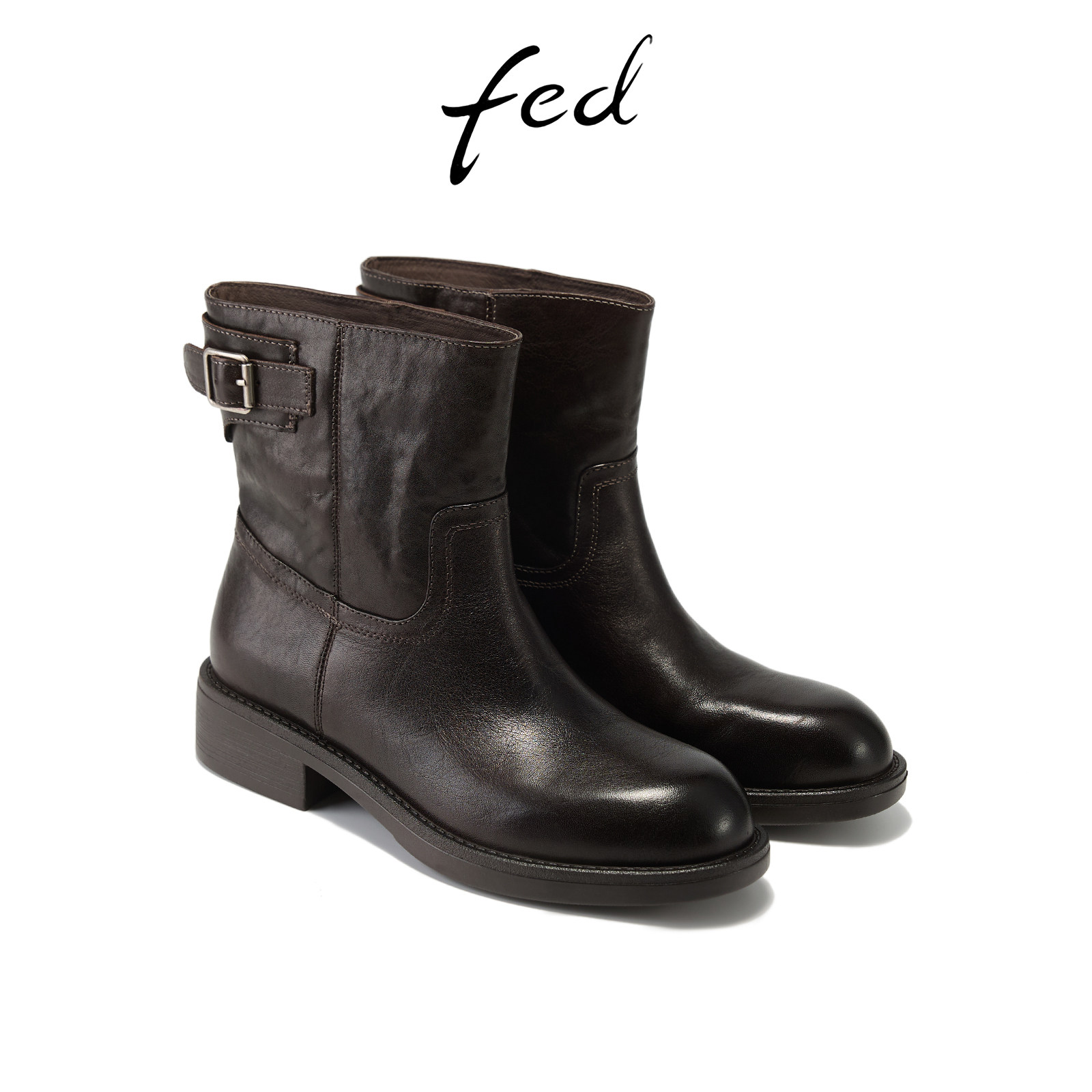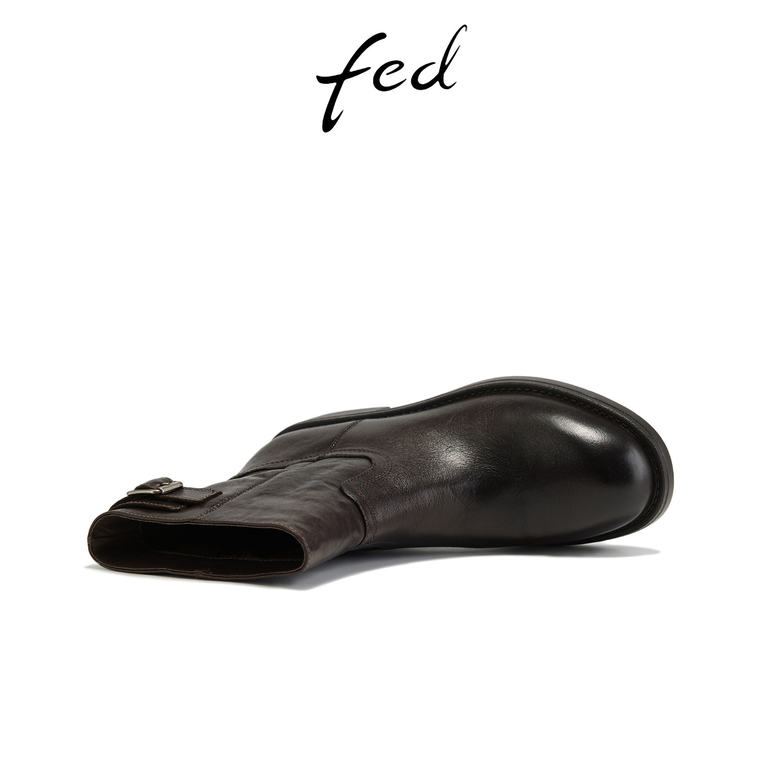 fed英伦风时装靴冬季新款女靴真皮切尔西靴粗跟短靴女S1104-ZC705