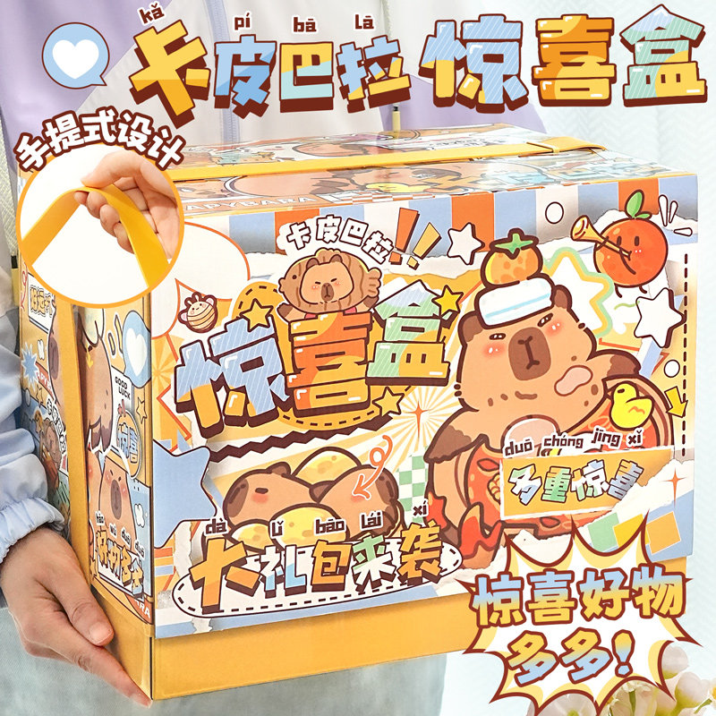 卡皮巴拉惊喜盒笔记本文具套装礼盒小学生开学礼物儿童生日礼物女孩生日礼物盲袋送小孩创意送男孩手提大礼包