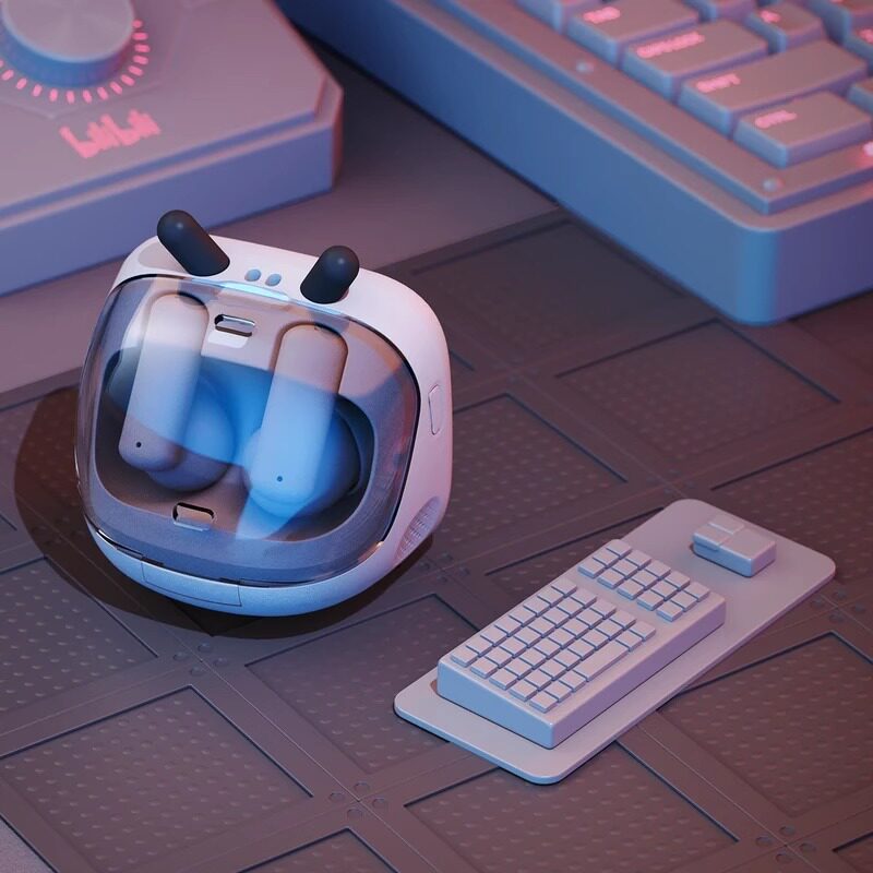 bilibili哔哩哔哩CUBEFACE小电视LCD触屏真无线蓝牙耳机桌搭摆件