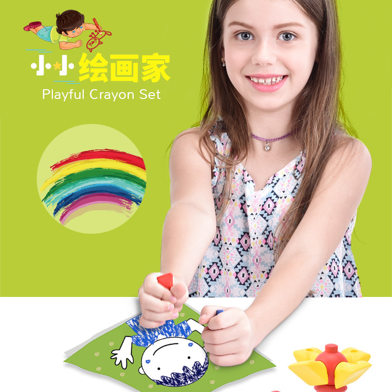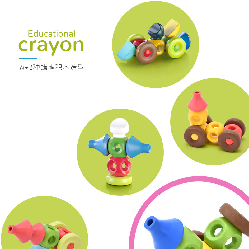 Lubek儿童益智蜡笔安全可水洗拼搭积木创意绘画手工玩具