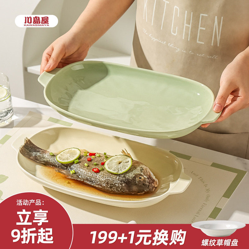川岛屋双耳鱼盘家用2025新款蒸鱼盘子高级感餐具椭圆形装鱼碟菜盘