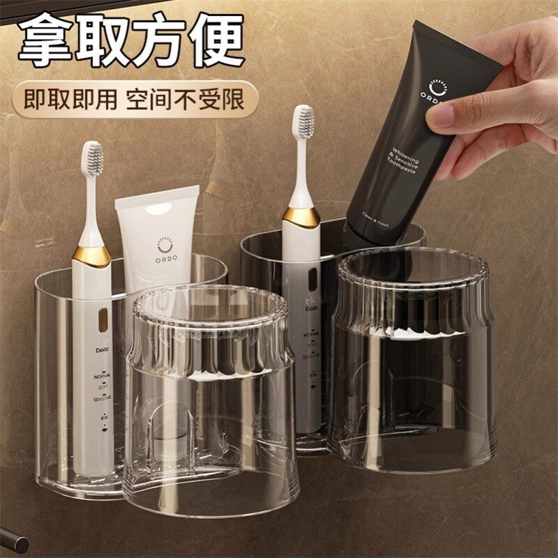 轻奢电动牙刷置物架漱口杯牙杯架壁挂免打孔卫生间洗漱杯收纳套装