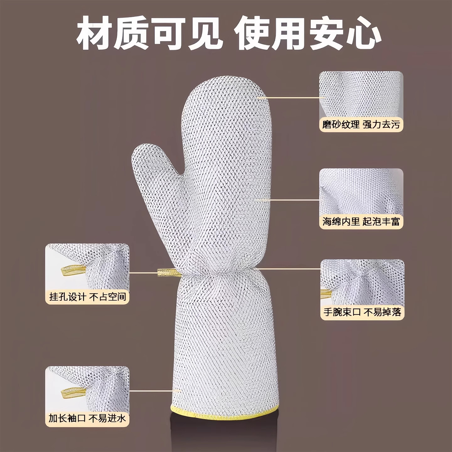 钢丝洗碗手套加长防水清洁隔热烫厨房刷碗女家用家务加厚耐用刷锅