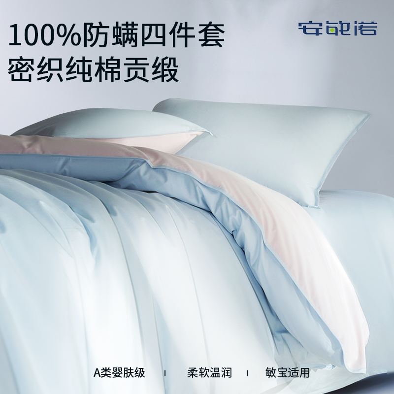安敏诺防螨虫四件套纯棉磨毛床品秋冬被套床单母婴级床上用品套件