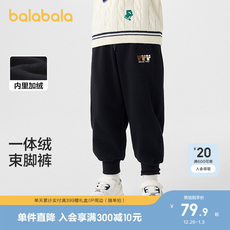 巴拉巴拉童装儿童长裤男童秋冬装加绒束脚休闲裤保暖加厚百搭大童