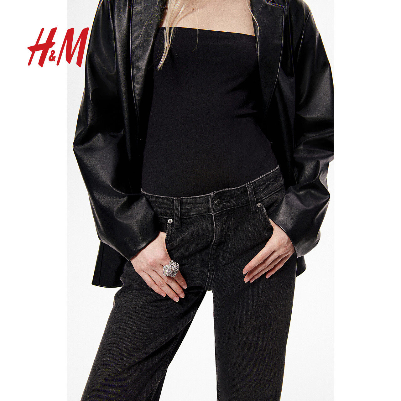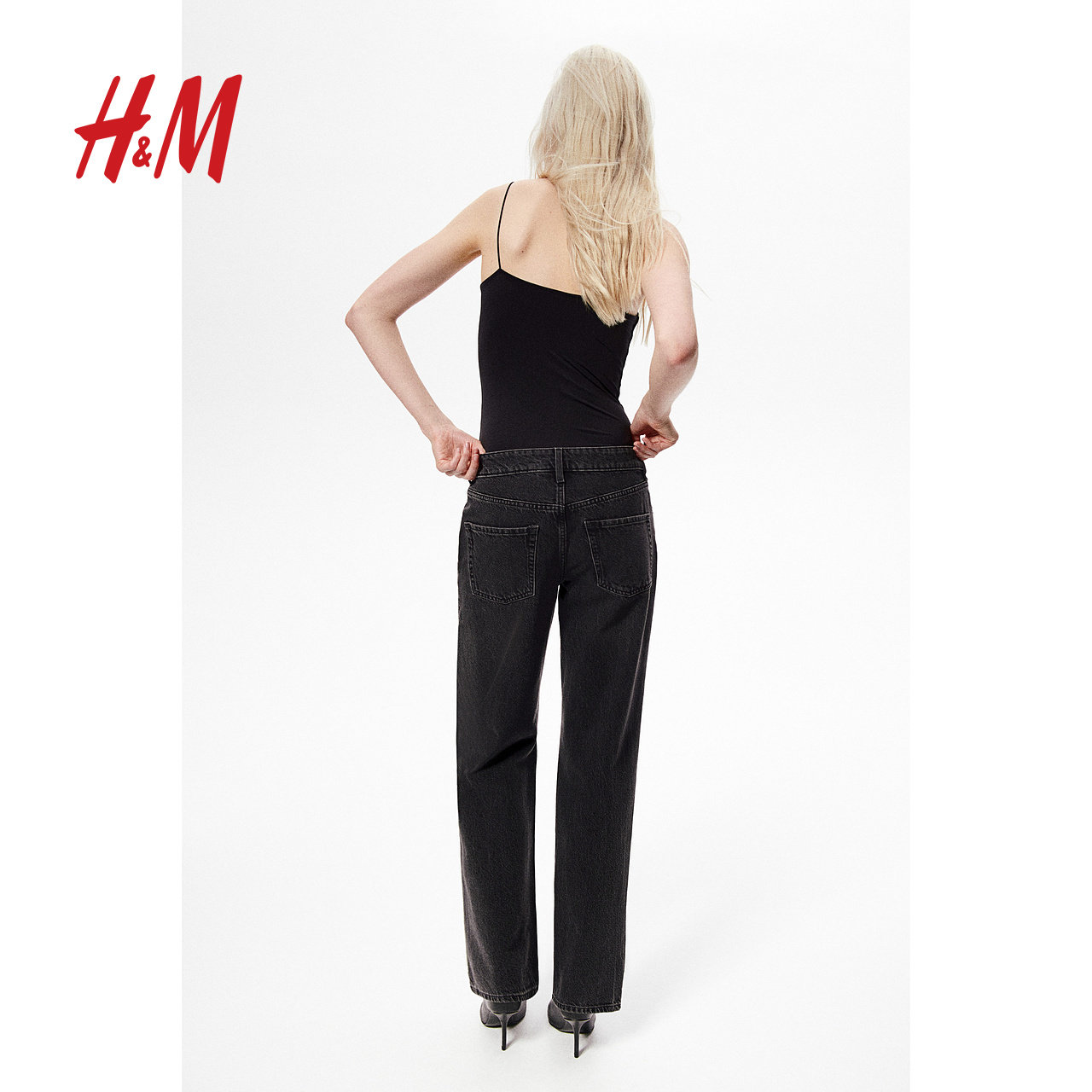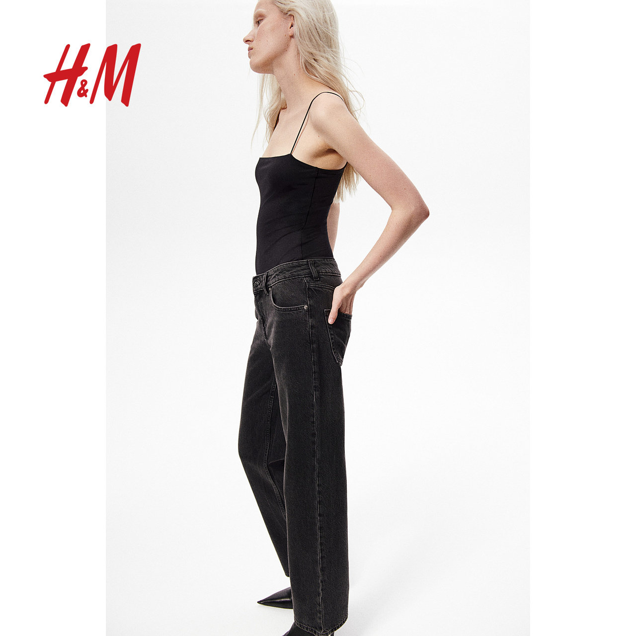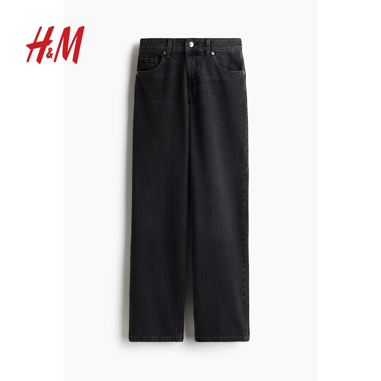 HM女装牛仔裤直筒复古牛仔裤时尚中腰潮流设计简约长裤1237438