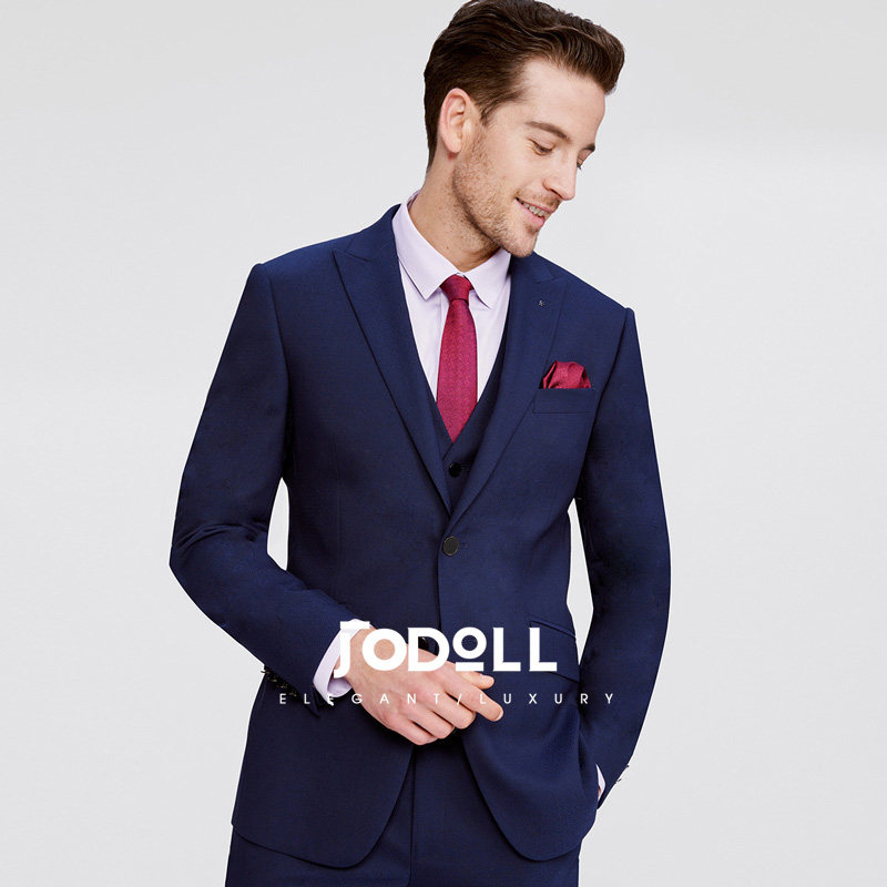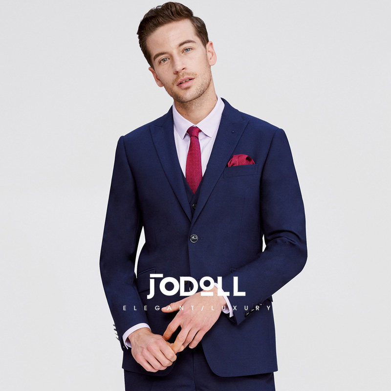 乔顿2025年秋冬婚庆新郎礼服西服套装男修身商务正装蓝色套西