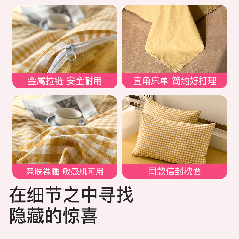 A类水洗棉双层纱四件套被罩非全棉纯棉床单人学生宿舍被套三件套