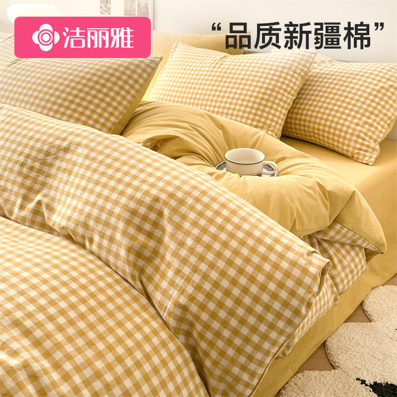 洁丽雅四件套纯棉全棉2025新款被套床单床品床笠款宿舍床上三件套