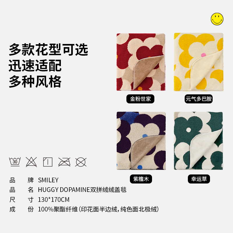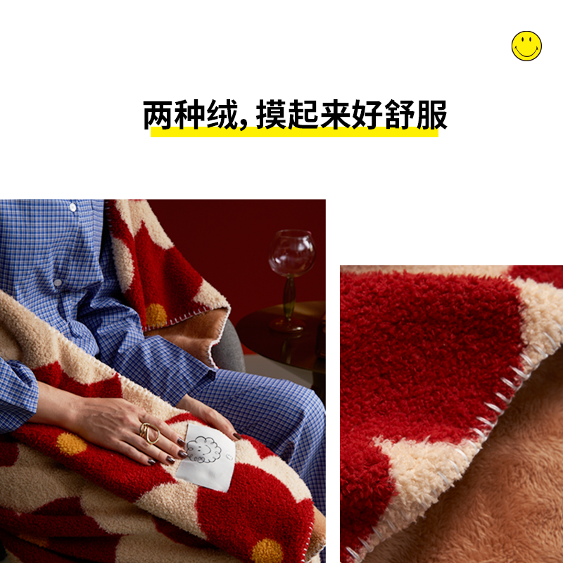 【胡可推荐】Smiley笑脸双拼绒绒盖毯蓬松保暖半边绒毯舒适抗静电