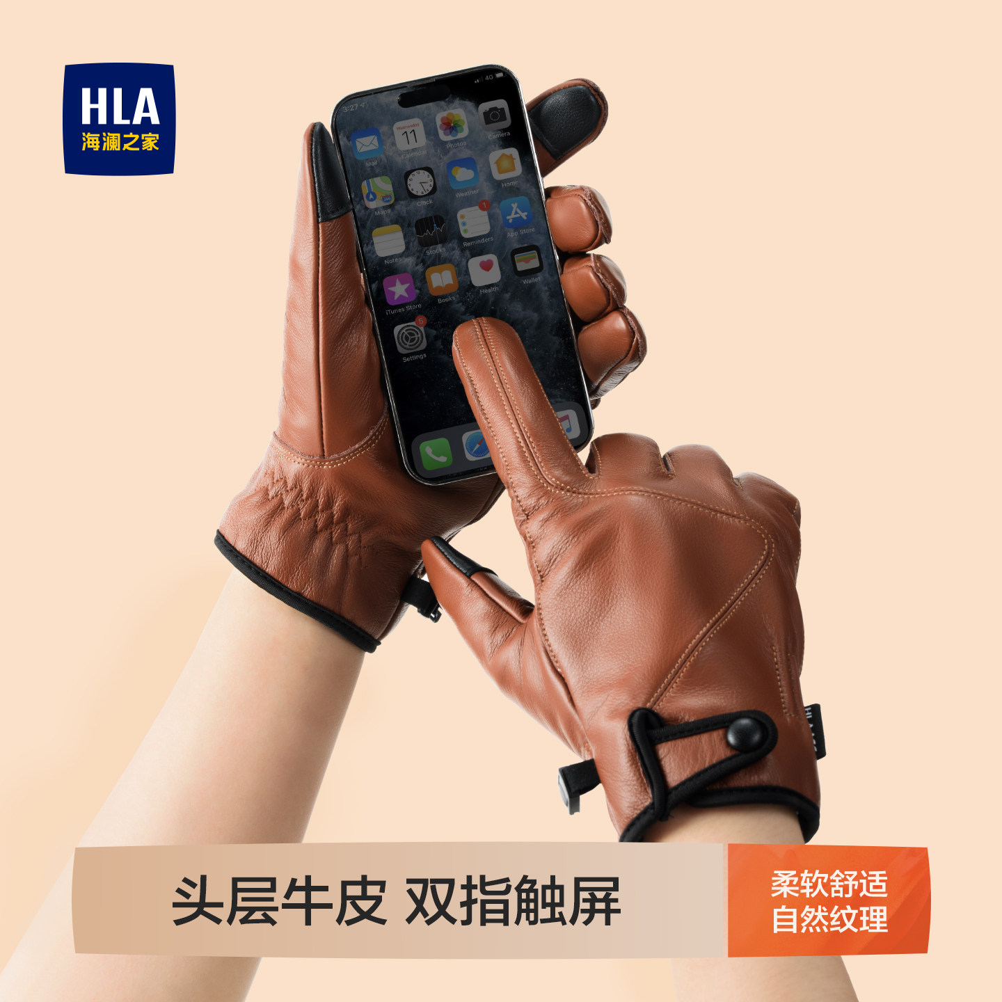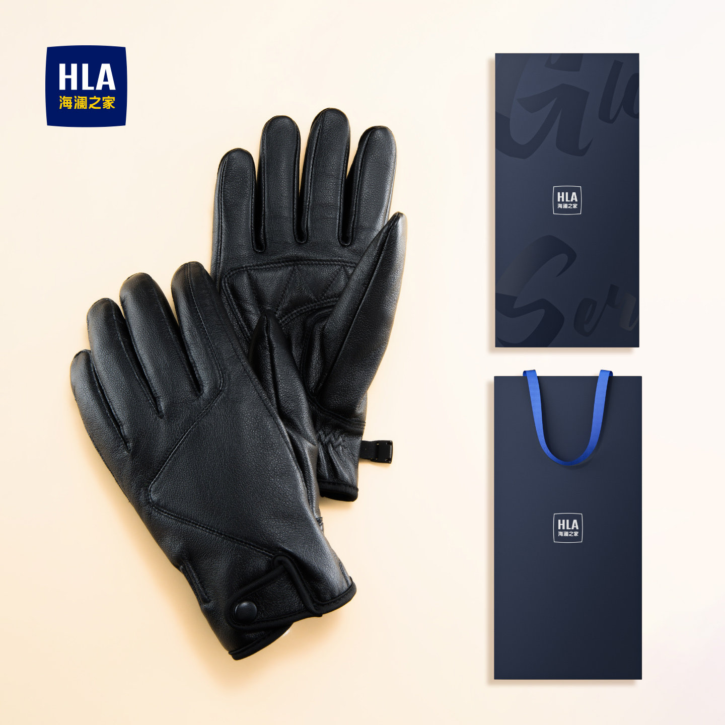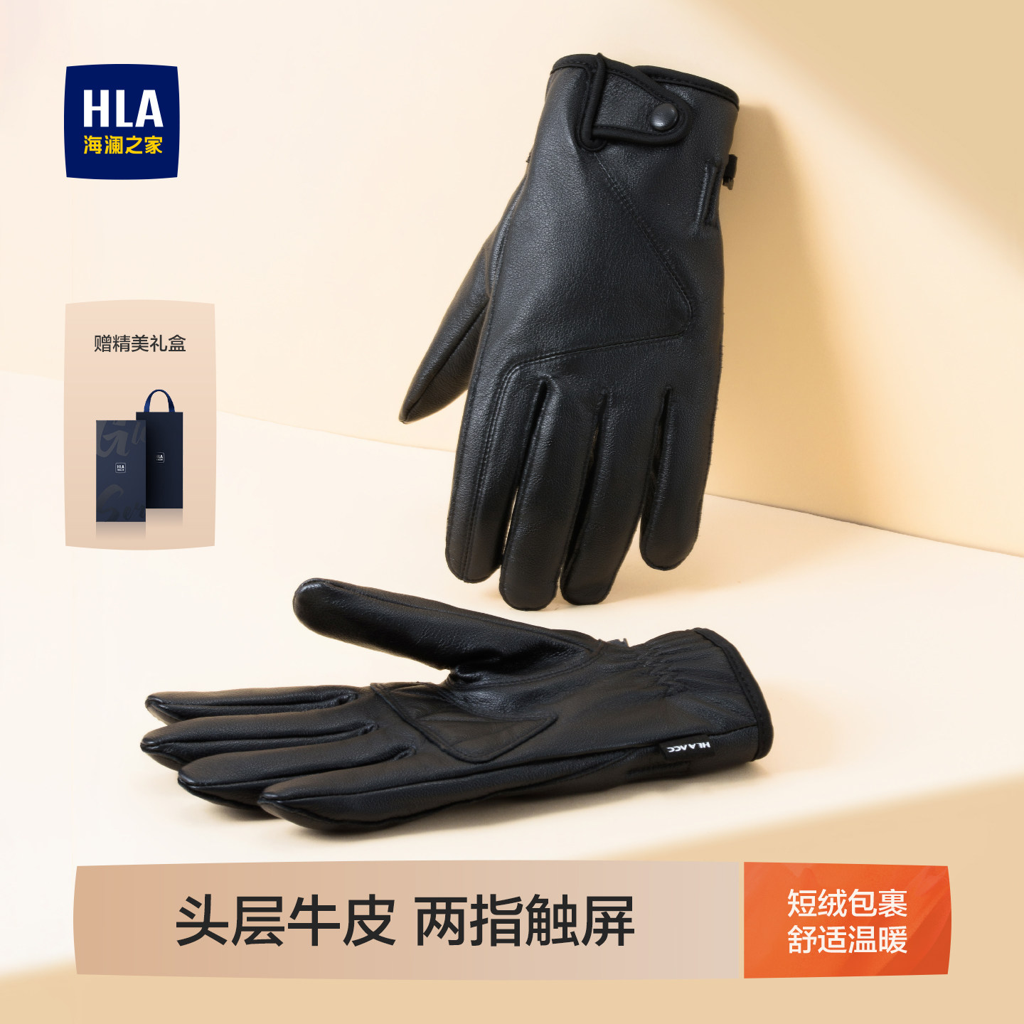 海澜之家真皮手套男士秋冬季保暖骑行摩托车防滑触屏牛皮加绒加厚
