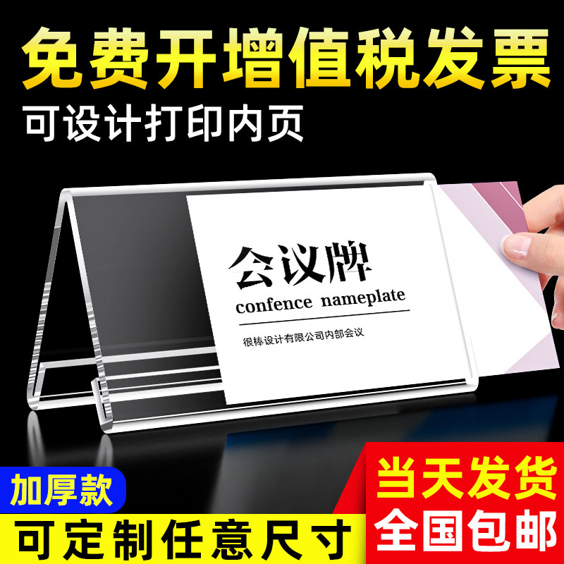台卡会议牌座位姓名席卡牌席位台牌三角亚克力桌牌开会小组人名牌双面台签桌号牌嘉宾评委签到学生名字牌定制