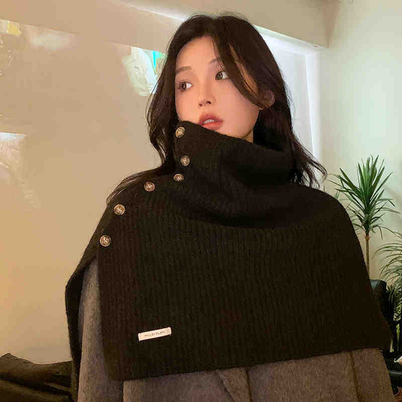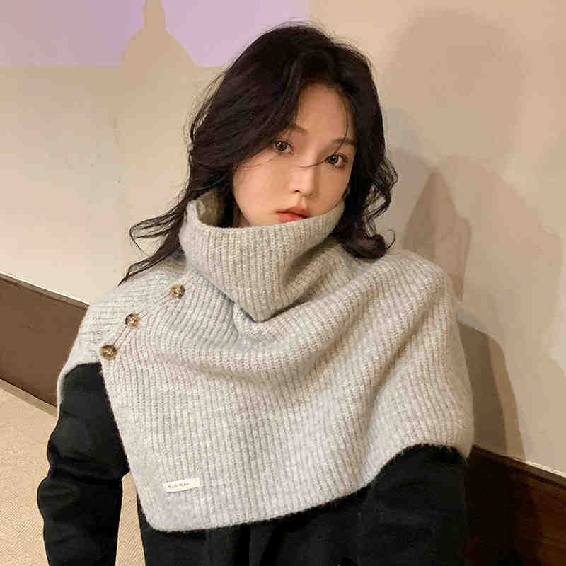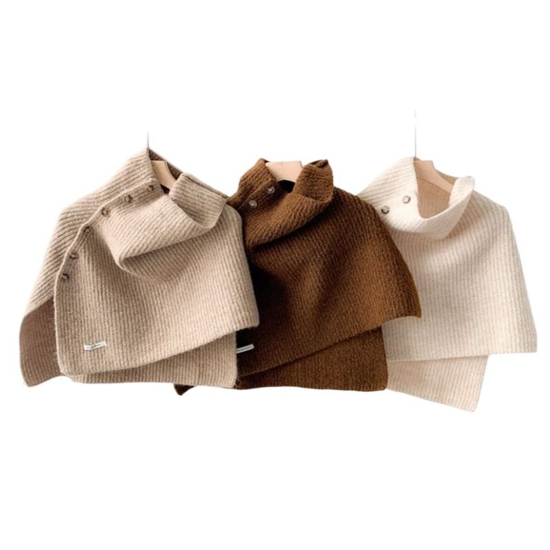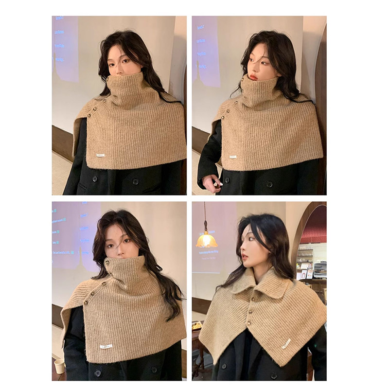 开叉高领羊毛披肩斗篷针织外搭女秋冬季毛线围脖套头保暖红色黑色