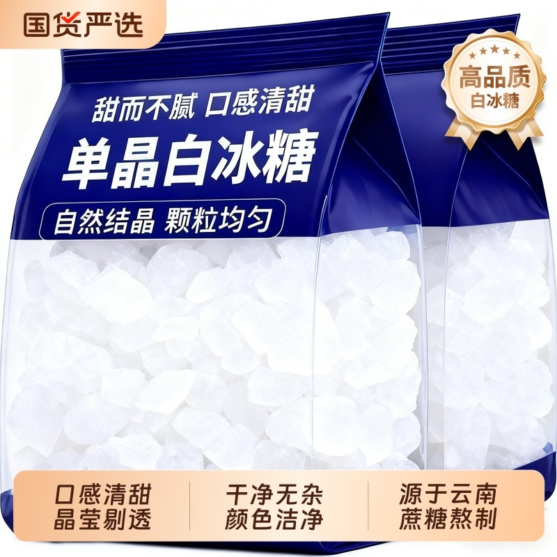 云南单晶冰糖白冰糖50斤袋装冰糖甘蔗糖泡酒家商用冰糖块烘培调