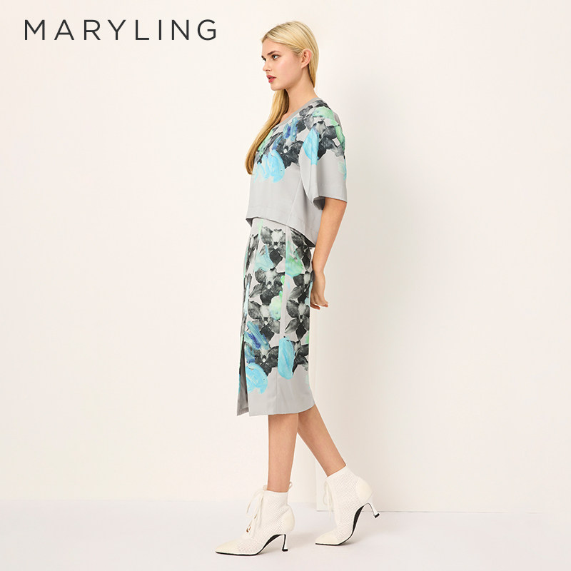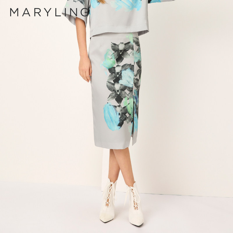 MARYLING玛俪琳2025春季新品高级灰油画印花包臀半裙A1FBW72330