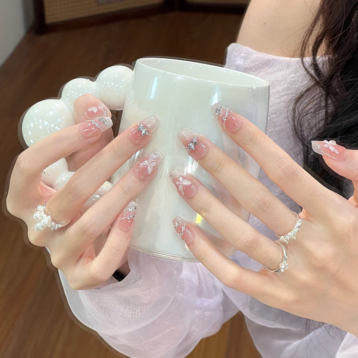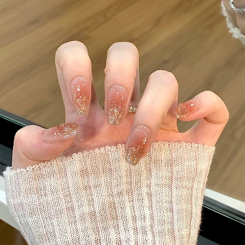 纯手工穿戴甲多肉青提裸色碎钻奶咖色腮红美拉德黄皮显白美甲氛围感儿童指甲贴美甲贴纸