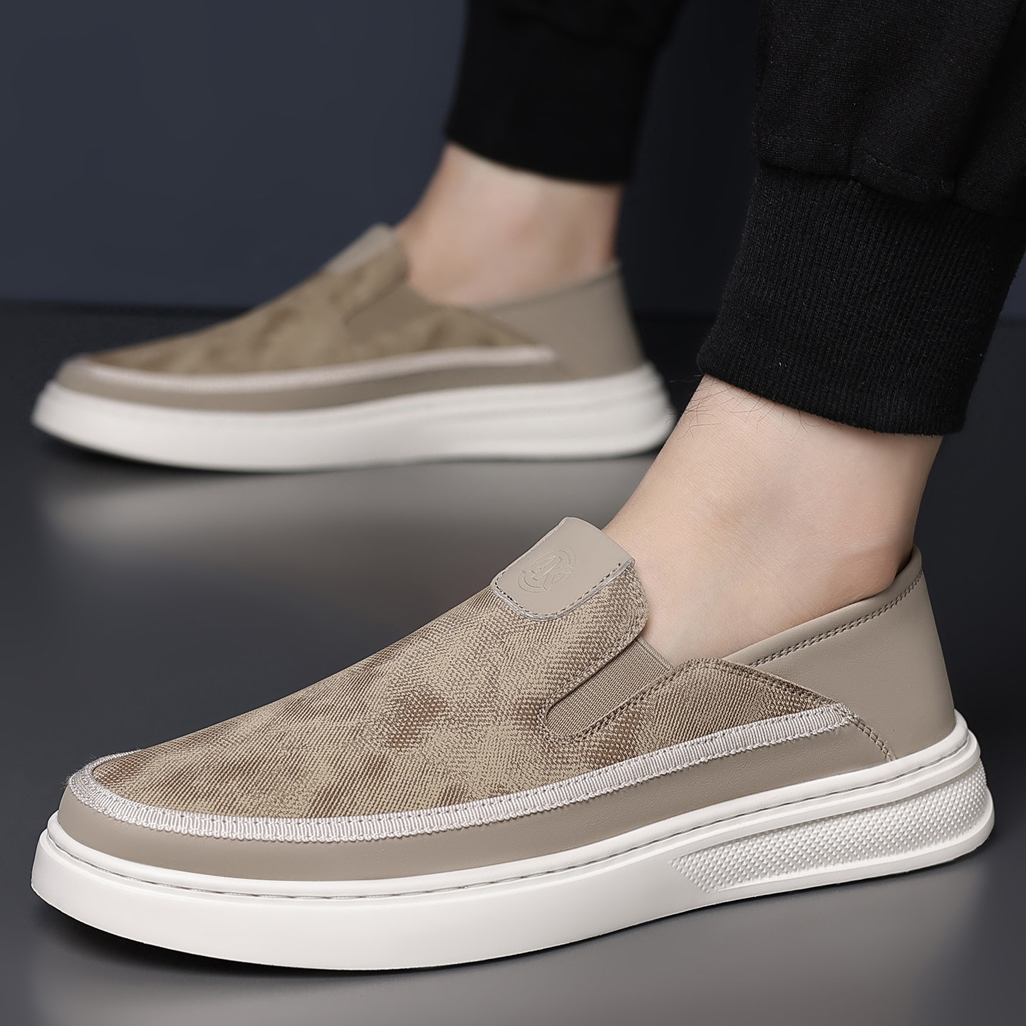奥康 男鞋2025秋季男士休闲百搭软底透气豆豆皮鞋一脚蹬小白鞋子H