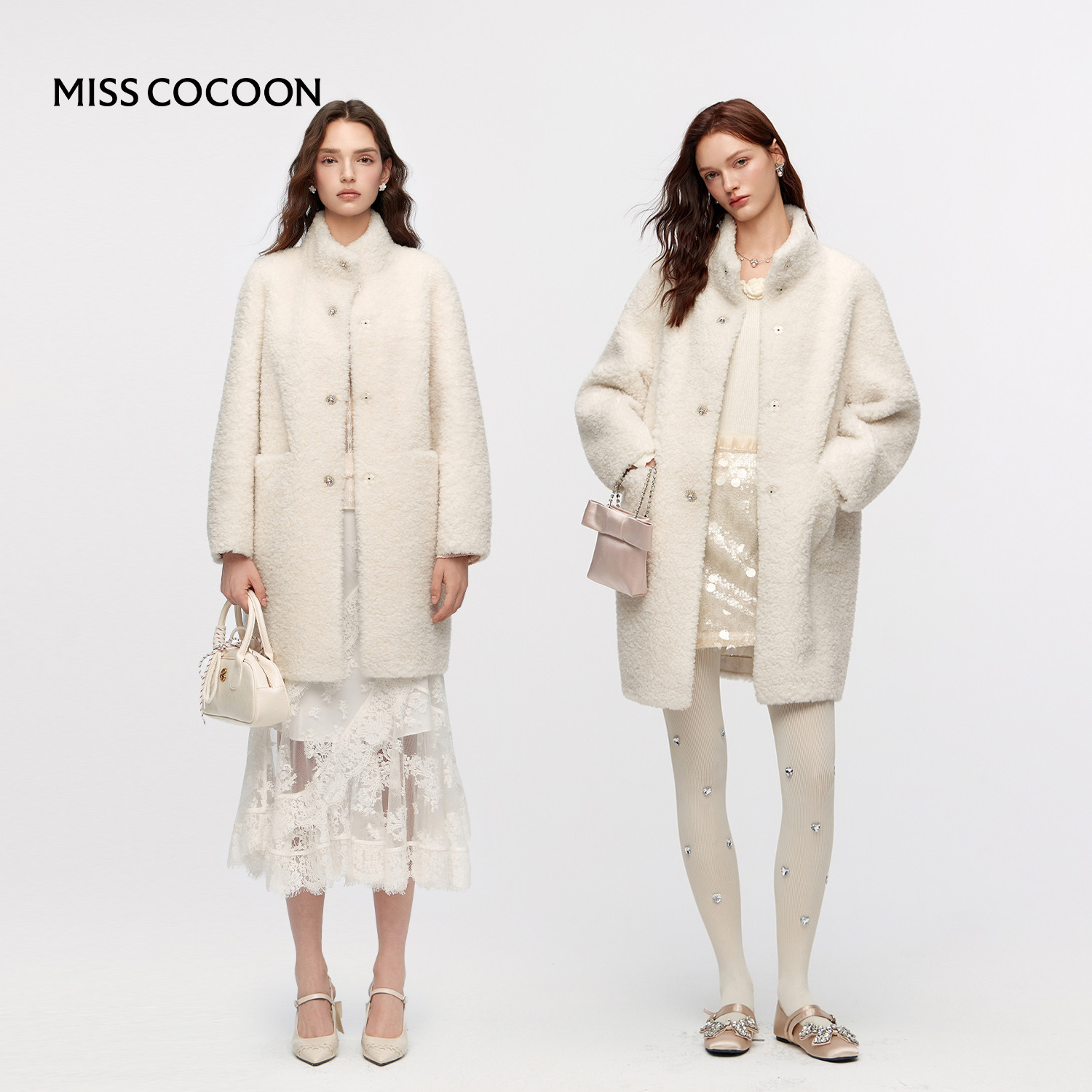 MISSCOCOON可可尼白色外套羊羔大衣女2025冬季新款100%绵羊毛皮草