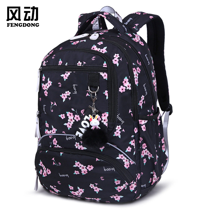 双肩女包休闲背包大容量多功能女小学生初高中生潮流书包印花旅行