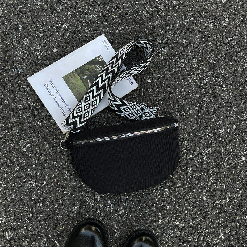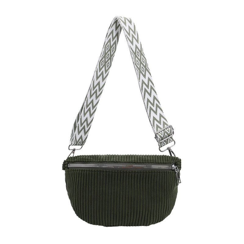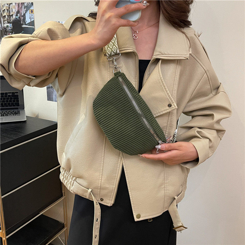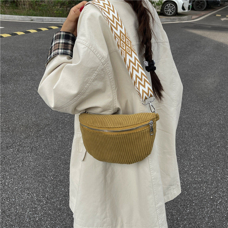 女包2025新款街头潮流帆布条绒简约休闲腰包单肩斜挎小背包