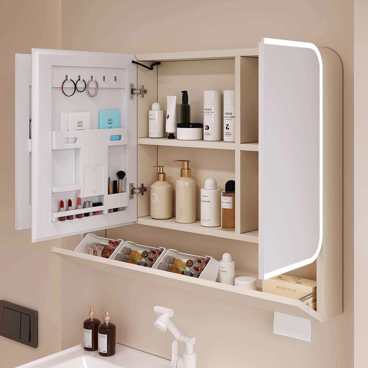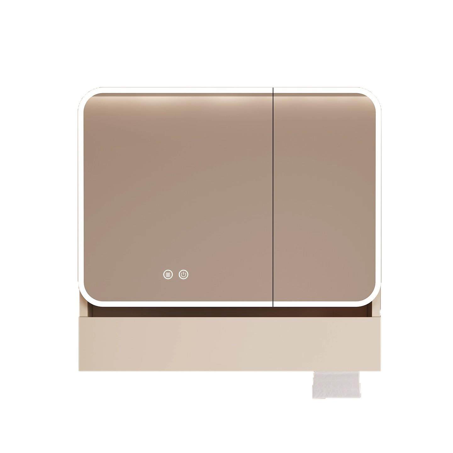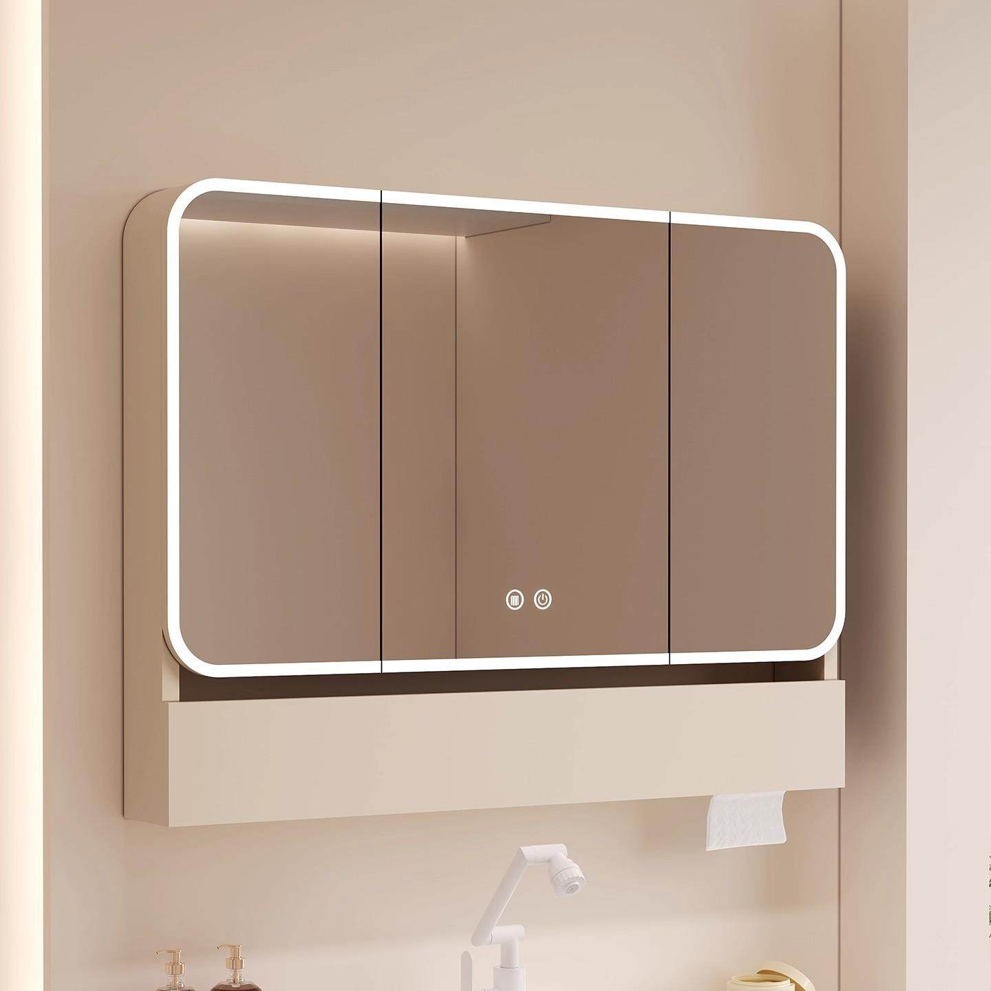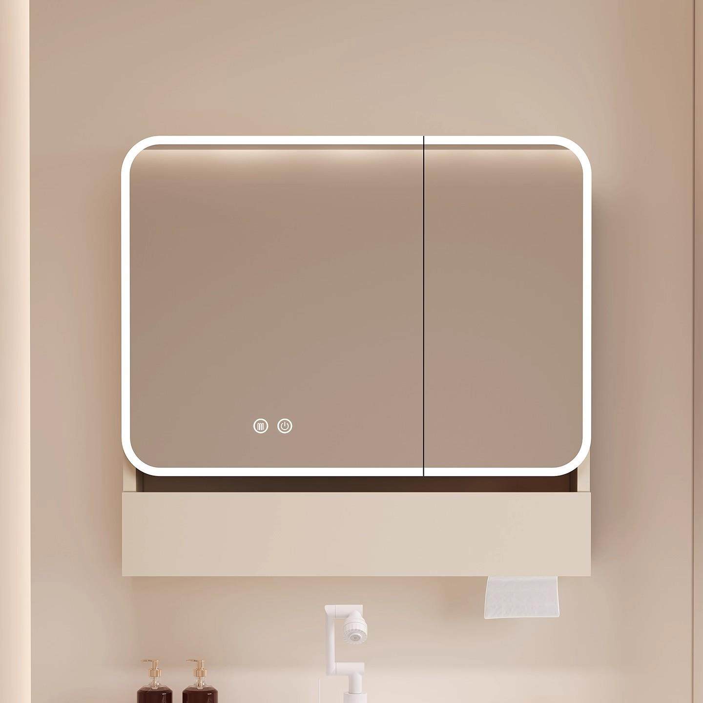 太空铝圆弧形浴室镜柜智能收纳储物柜卫生间挂墙式带梳妆镜抽纸孔