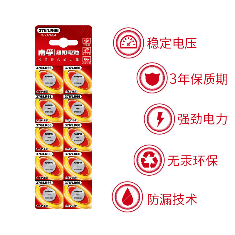 南孚376/LR66纽扣电池377AG4适用卡西欧SR626SW电子1.5石英护士表