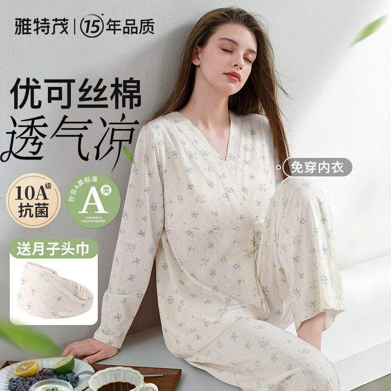 婧麒云慕丝月子服产后秋冬季纯哺乳家居服棉怀孕产妇孕妇睡衣套装