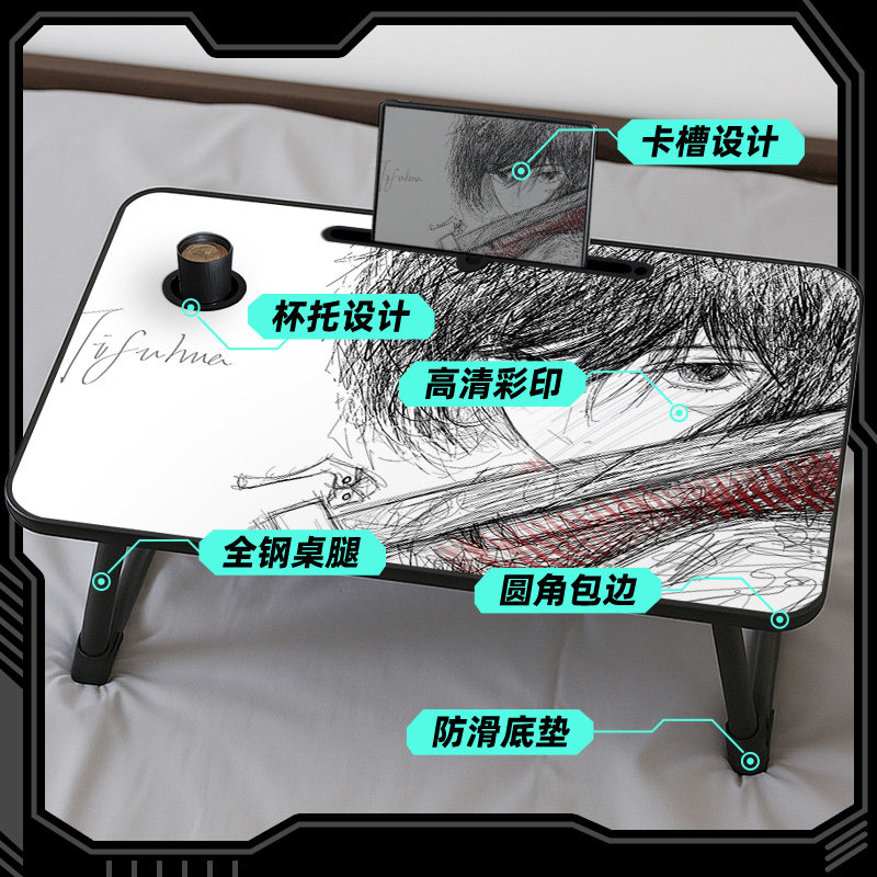 动漫线稿风床上折叠小桌子三笠明日香笔记本电脑桌膝上桌学生宿舍学习桌家用卧室飘窗作业写字桌儿童阅读书桌
