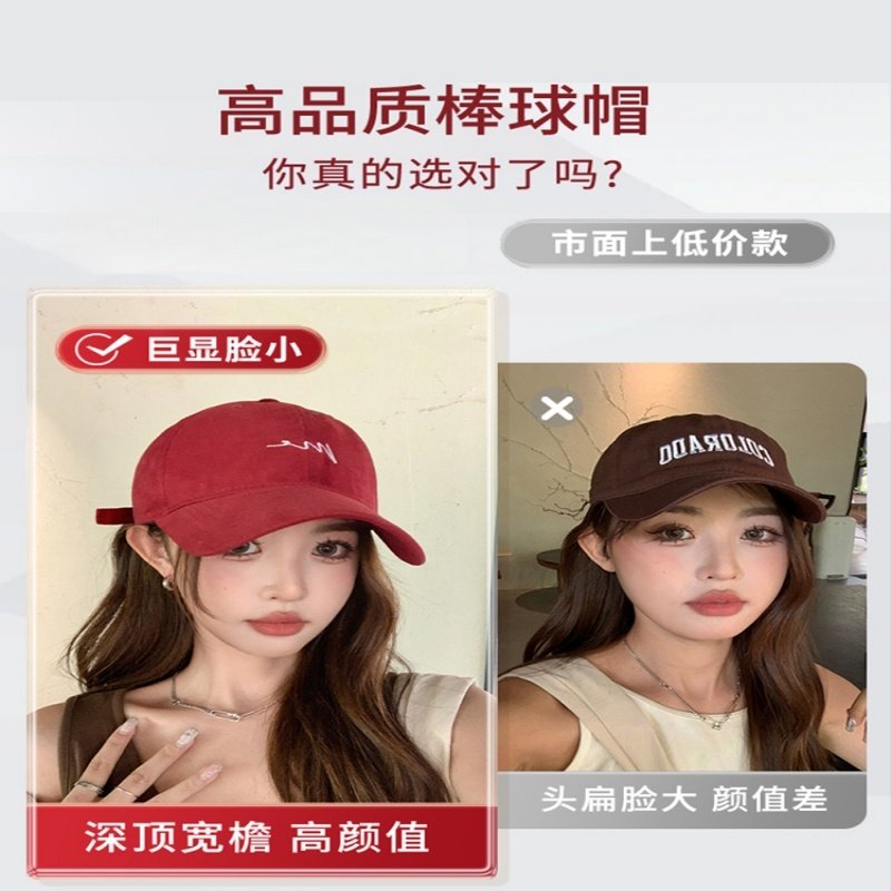 酒红色大头围帽子棒球帽大脸显脸小宽帽檐女加大加深顶红色鸭舌帽
