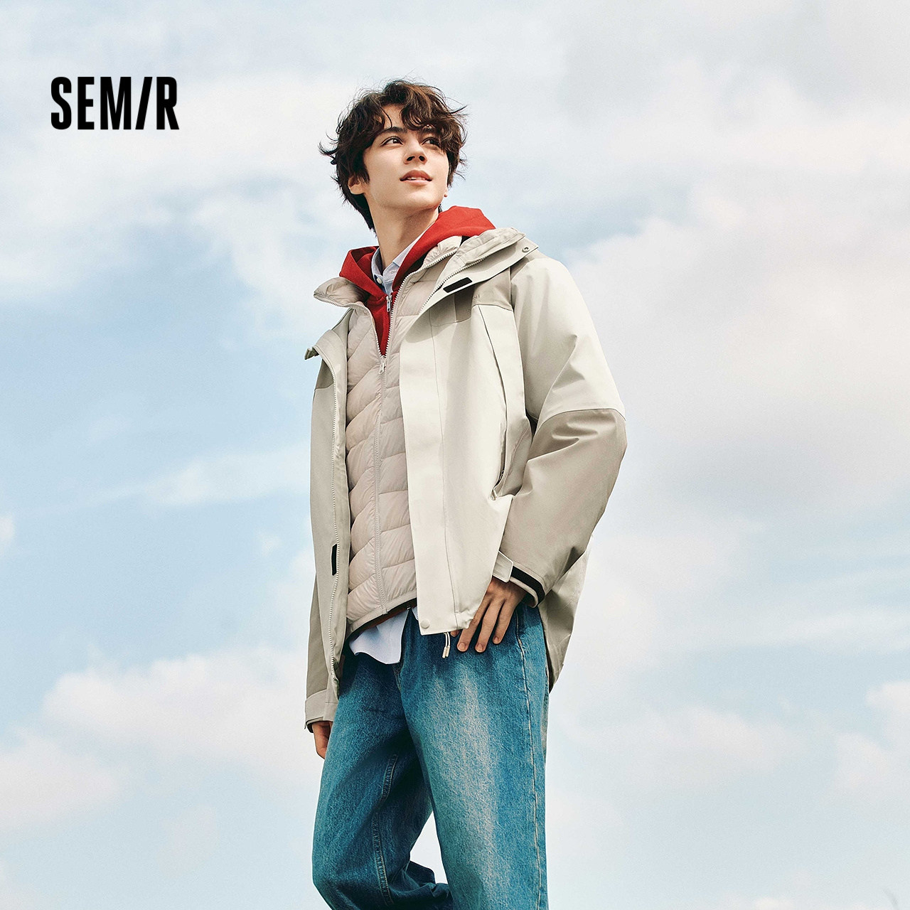 森马棉服男冬季防雨防风三合一冲锋衣户外登山徒步两件套情侣外套